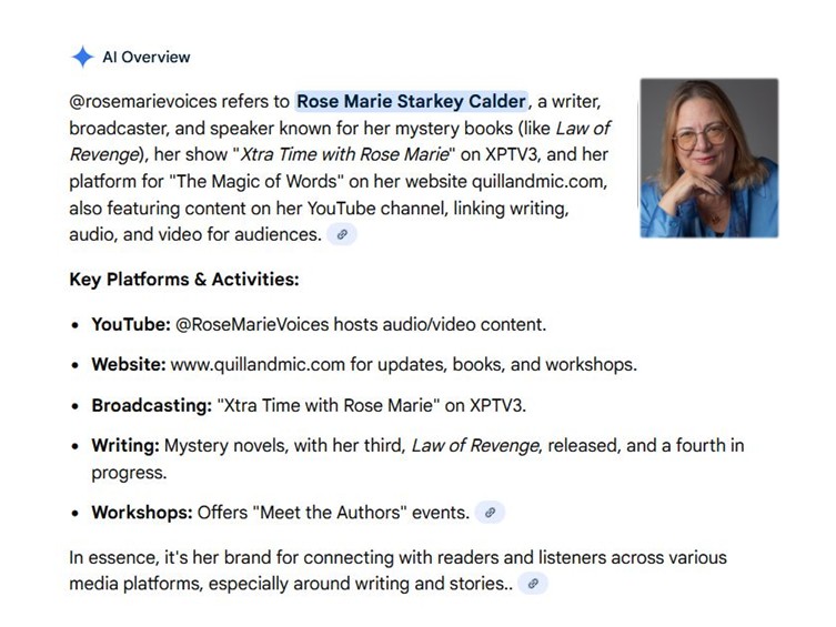 The magic of words ignites excitement and builds anticipation—especially as a Master of Ceremonies at festivals, where I energize audiences for every act. With over 15 years of experience interviewing guests on TV, radio, and live events, I bring sharp communication, quick adaptability, and seamless event flow.Being an MC is more than announcements—it’s about owning the energy, pacing, and transitions that keep events running smoothly and audiences fully engaged. I’ve led intimate gatherings and captivated crowds of thousands, handling glitches, delays, and surprises with calm confidence.I read the room, drive the vibe, and make every event unforgettable.Explore videos of my speaking engagements across diverse settings on my YouTube channel @RoseMarieVoices, my website Quill and Mic, and my Facebook page at www.facebook.com/Author.RoseMarie