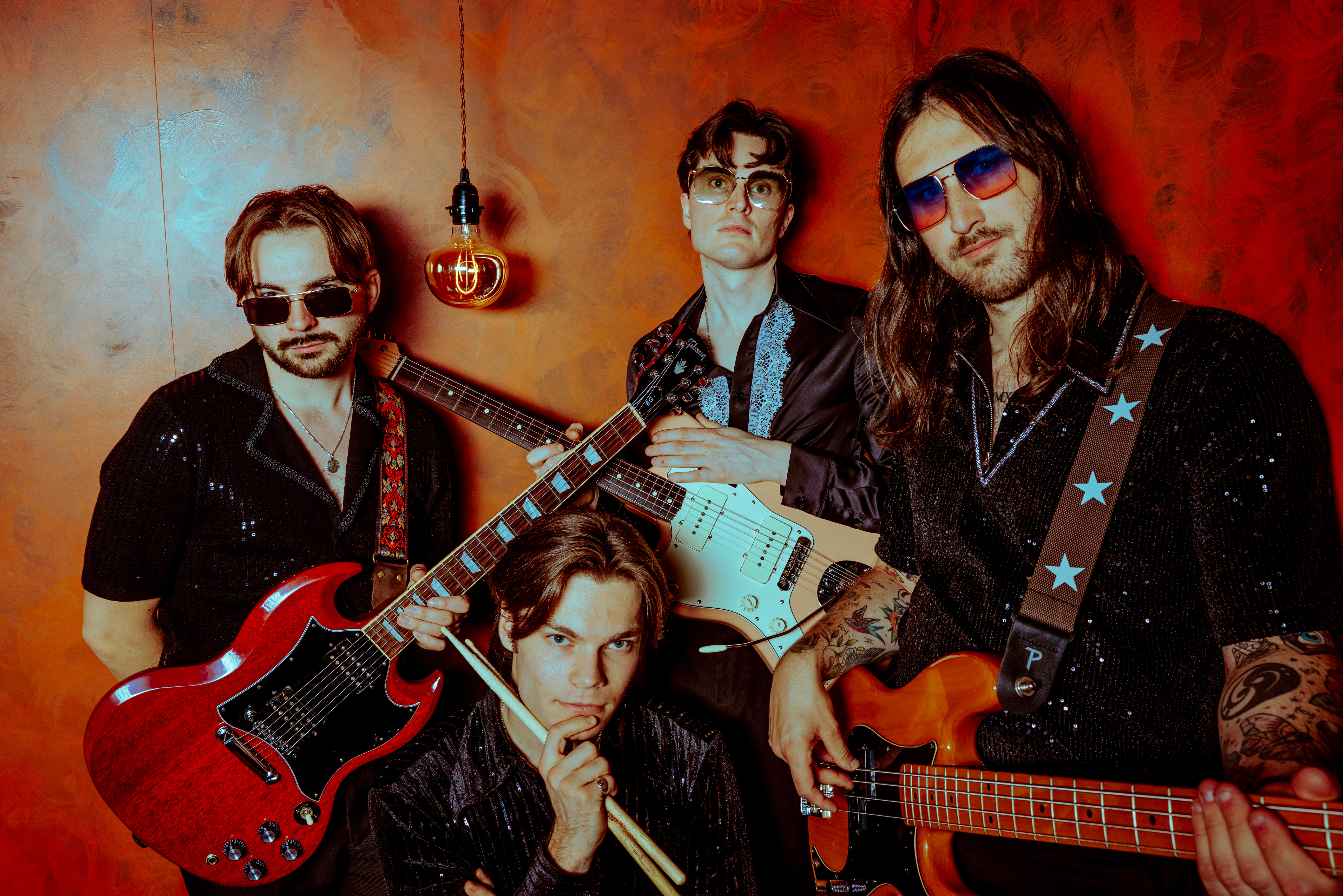 Formed on a lonely Valentine’s Day, Suncharmer are a high-energy indie rock quartet with vintage flair, fusing the swagger of glam-era greats like Bowie, T.Rex and Led Zeppelin with the sharp-tongued cool of indie favourites such as Arctic Monkeys and Miles Kane.